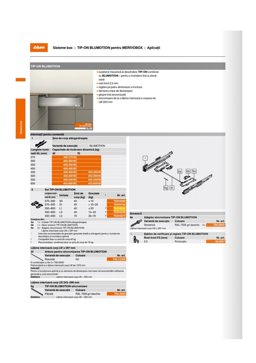 Set TIP ON BLUMOTION pentru MERIVOBOX tip L1, Stânga+Dreapta, Gri închis, BLUM, NL:350-600MM
