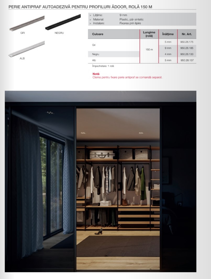 Perie antipraf autoadezivă- Sisteme pentru uși glisante, dimensiune 9x9mm,150ml, Gri