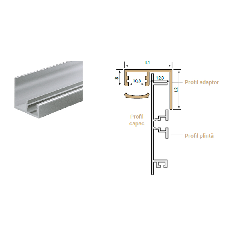 Șină dublă superioară pentru culisare, sistem MASTER, aluminiu, lungime: 3500mm