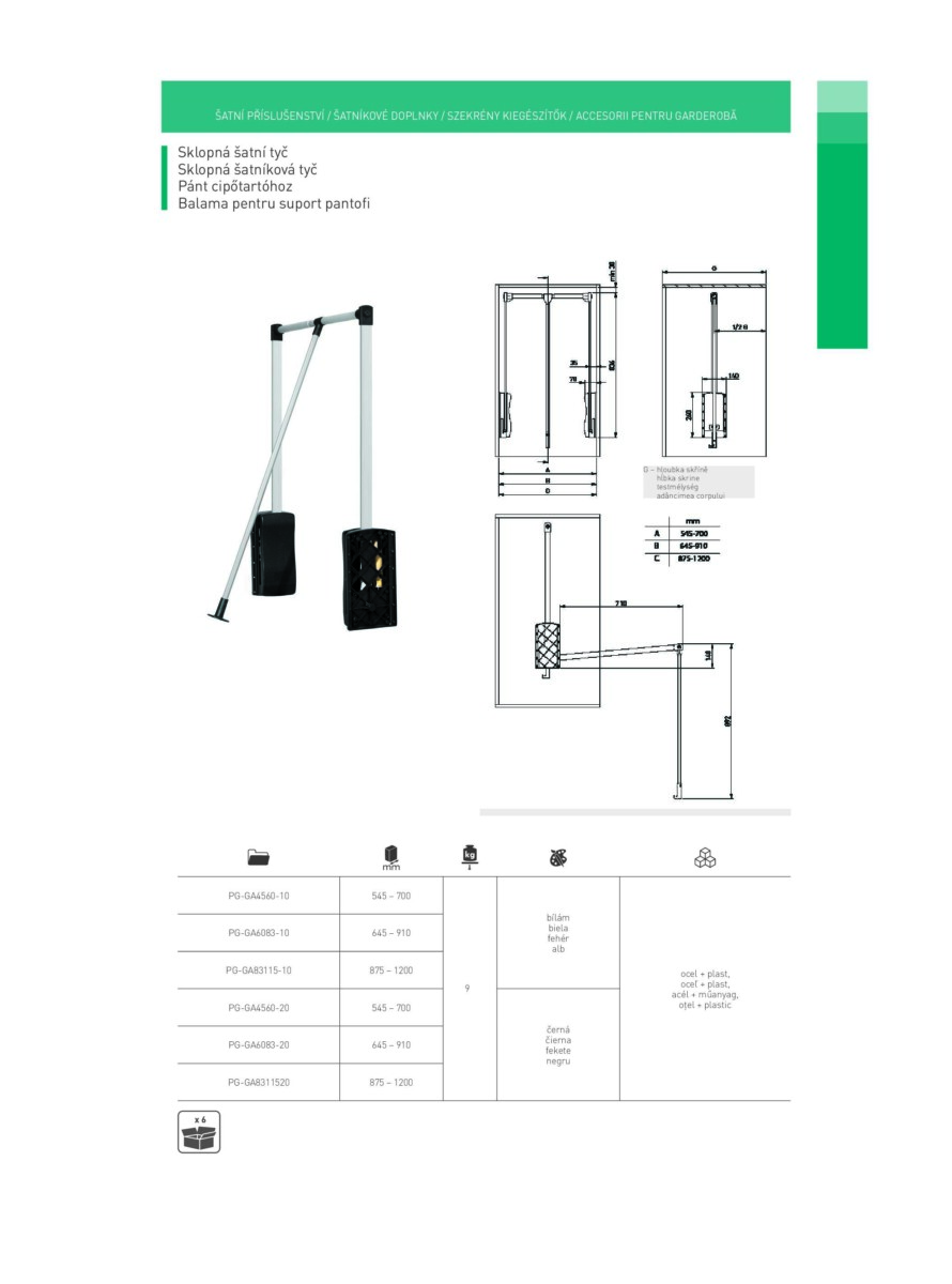 Suportul pentru dulapuri cu acționare pe gaz va funcționa ca echipament pentru părțile superioare ale dulapului, la care nu avem acces zilnic. Potrivit pentru utilizare în dulapuri și garderobe. Garantează acces rapid la haine prin coborârea barei cu un mâner. Suportul pentru dulapuri cu acționare pe gaz este disponibil în două variante de culoare și trei variante de dimensiune, cu posibilitatea de reglare a lățimii. Suportul este echipat cu o balustradă comodă, include un mâner care amortizează și limitează deschiderea. Bara poate suporta o sarcină de până la 12 kg.