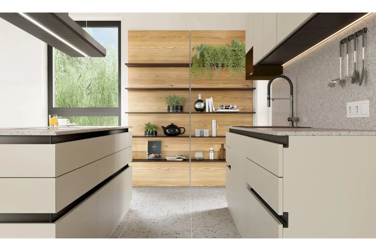 În conformitate cu tendința designului interior minimalist, sistemul VELLO este o soluție inovatoare care vă permite să creați o bucătărie completă, fără mânere. Designul fără mânere este acum la mare căutare, deoarece conferă bucătăriei un aspect modern și elegant. VELLO vă permite să deschideți și să închideți dulapuri, sertare și alte elemente de bucătărie folosind mecanisme ascunse, discrete și care nu deranjează aspectul minimalist al spațiului. Pe lângă estetică, soluțiile fără mânere au și aplicații practice. Fără mânere, bucătăria devine mai ușor de curățat, deoarece murdăria și praful nu se acumulează pe suprafețele mânerelor. În plus, lipsa mânerelor proeminente reduce riscul de a te accidenta și facilitează deplasarea în bucătărie.